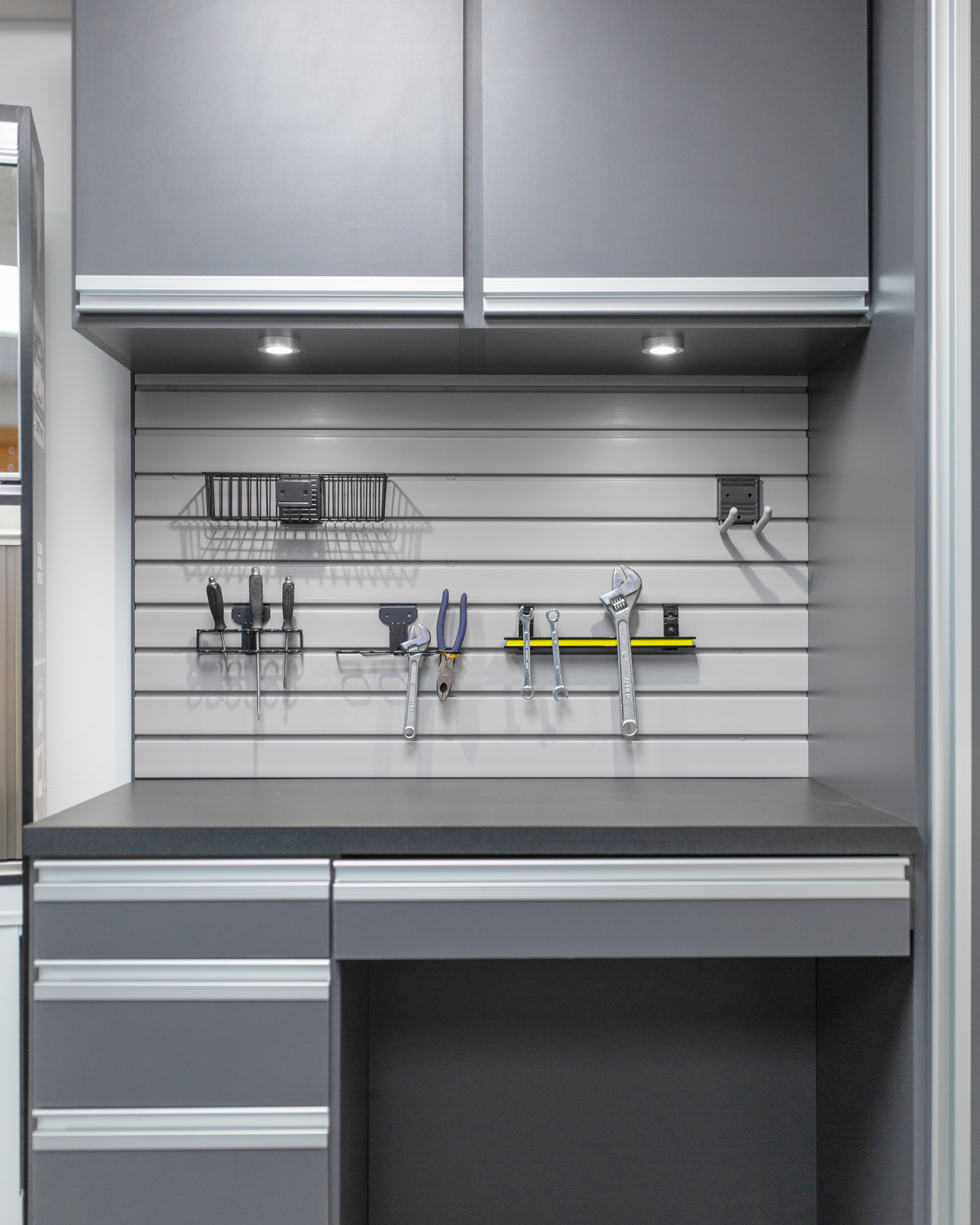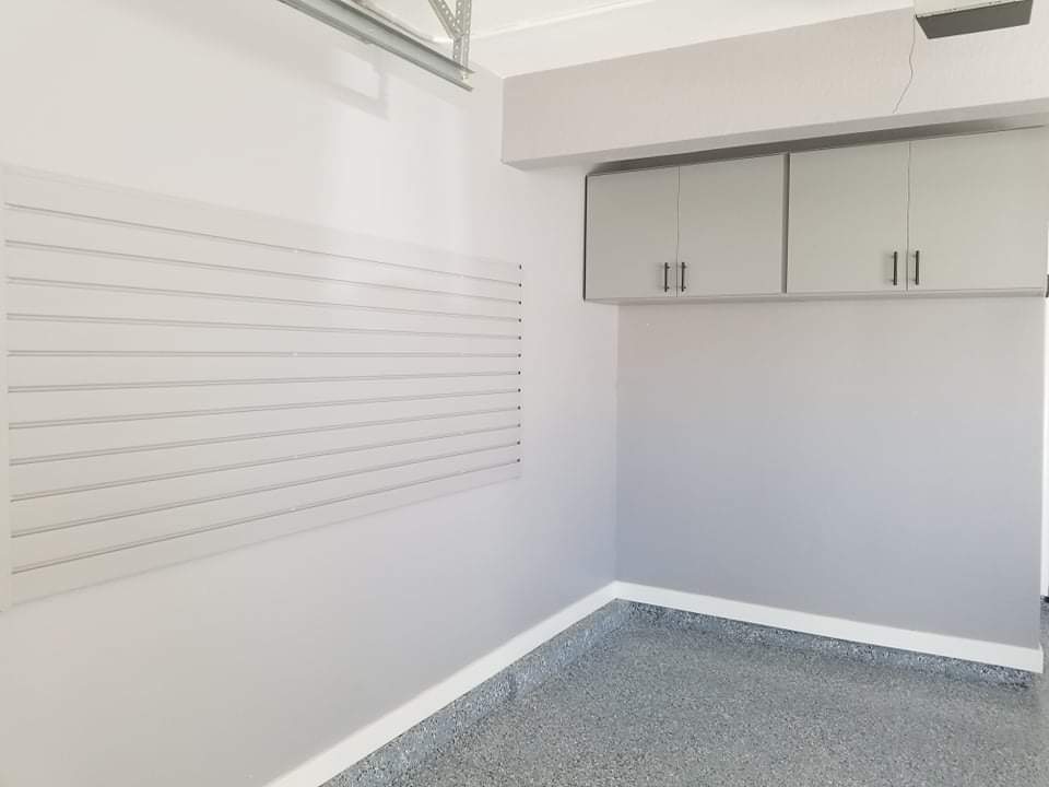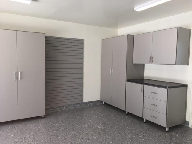 - Our custom garage storage cabinets are ideal for storing large items and our professionally installed slatwalls and garage shelving will always keep your tools and equipment in order.