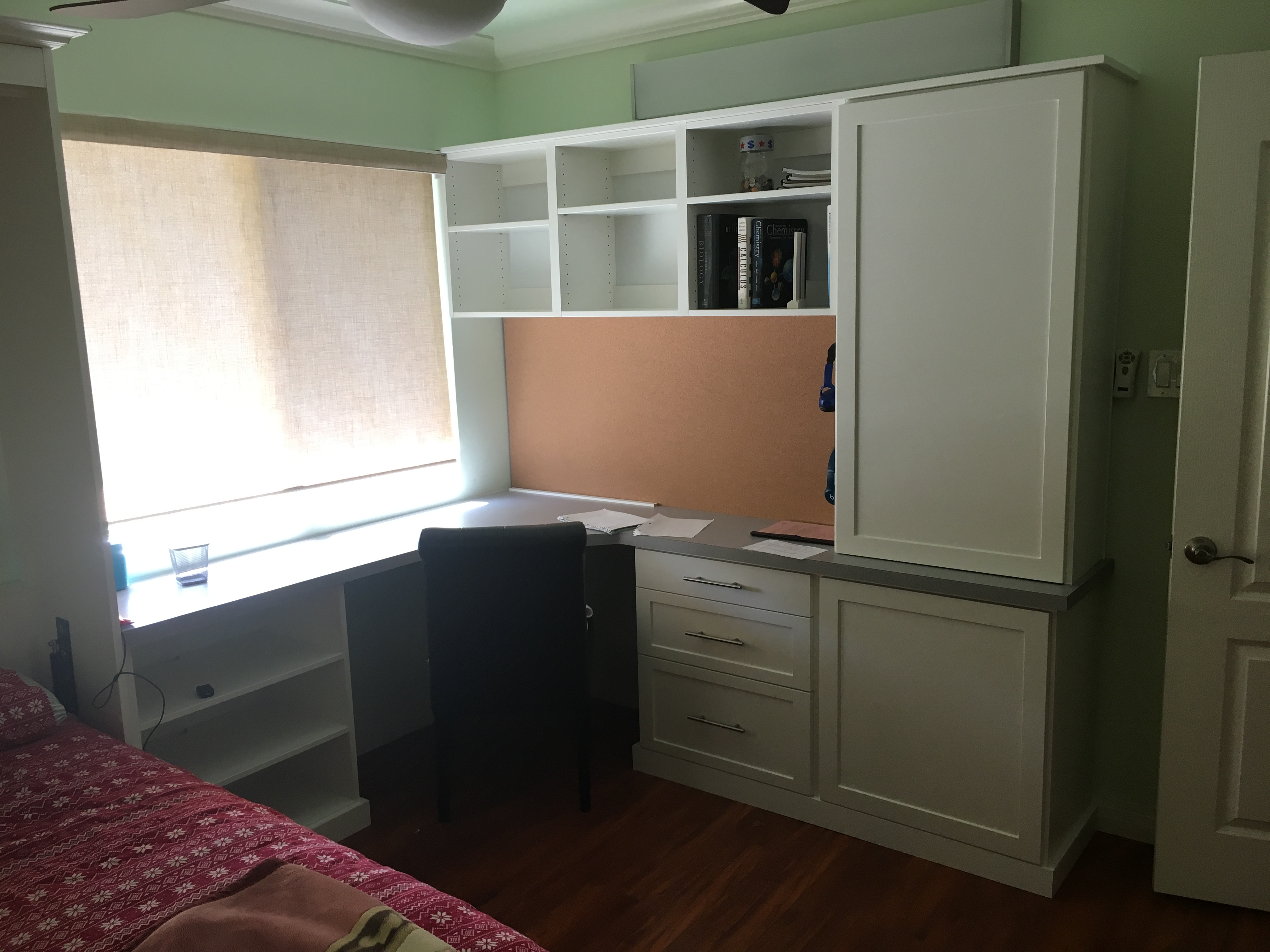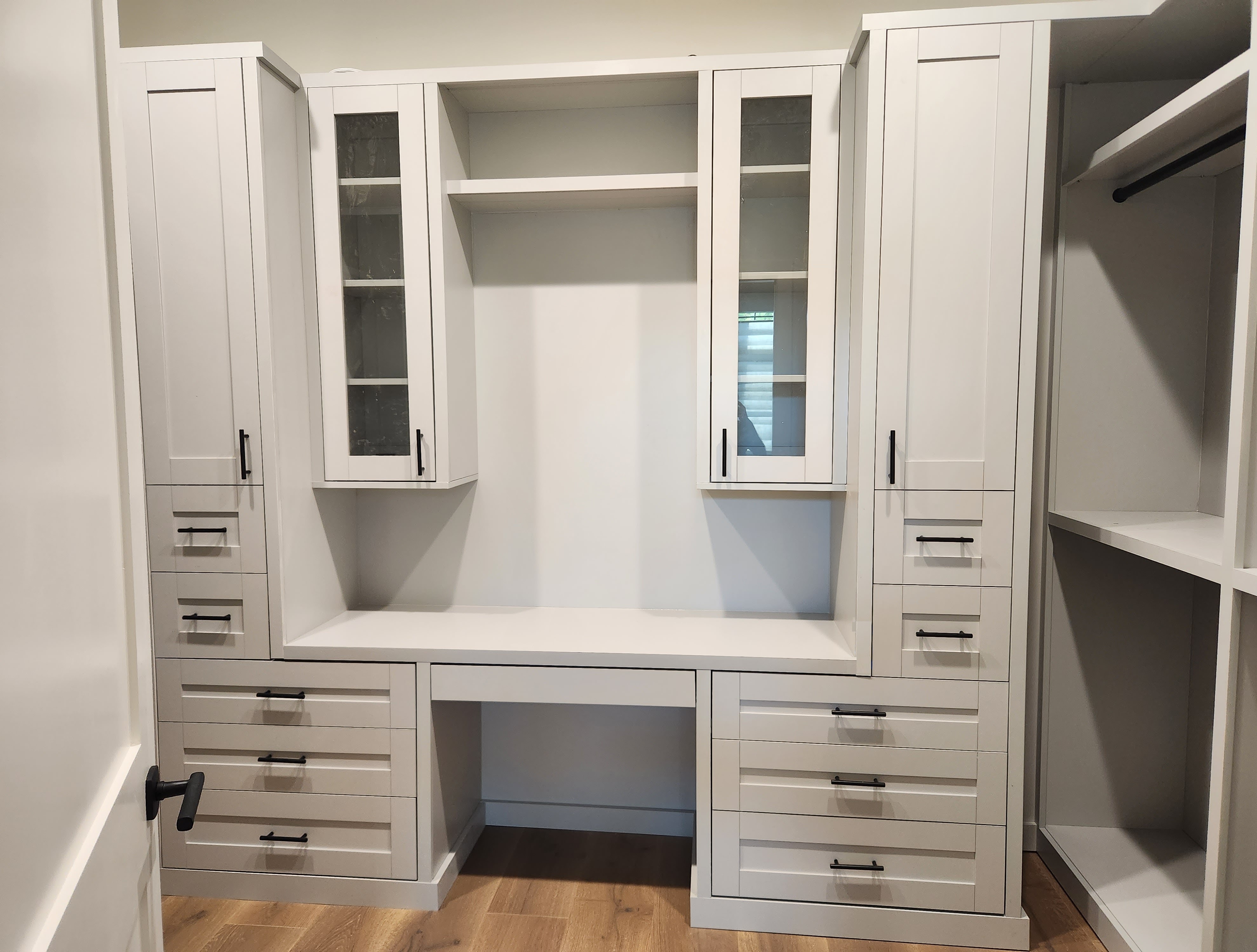 All of our home office storage systems are custom designed and built specifically for your space based on the custom design we create with you. Our cabinets and built-in storage solutions are hands crafted in our shop by professional carpenters and expert cabinetmakers to fit the unique contours of your space. Closet Solutions guarantees our cabinets for as long as you own your home.