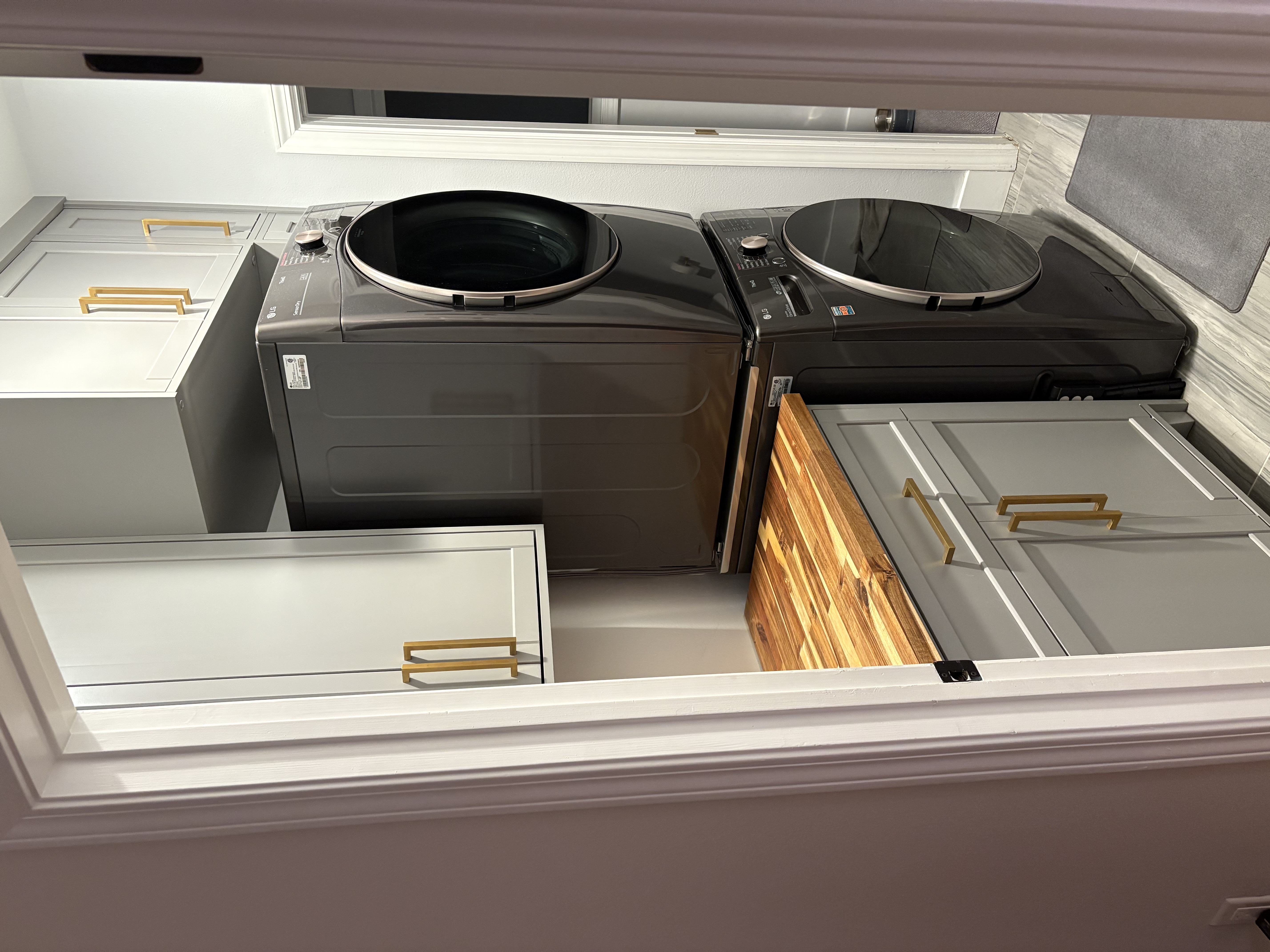 Our expert designers will create a personalized layout for your laundry room, designed to work efficiently with the location of your washer and dryer and fit within your existing space to maximize storage and create highly efficient work areas.