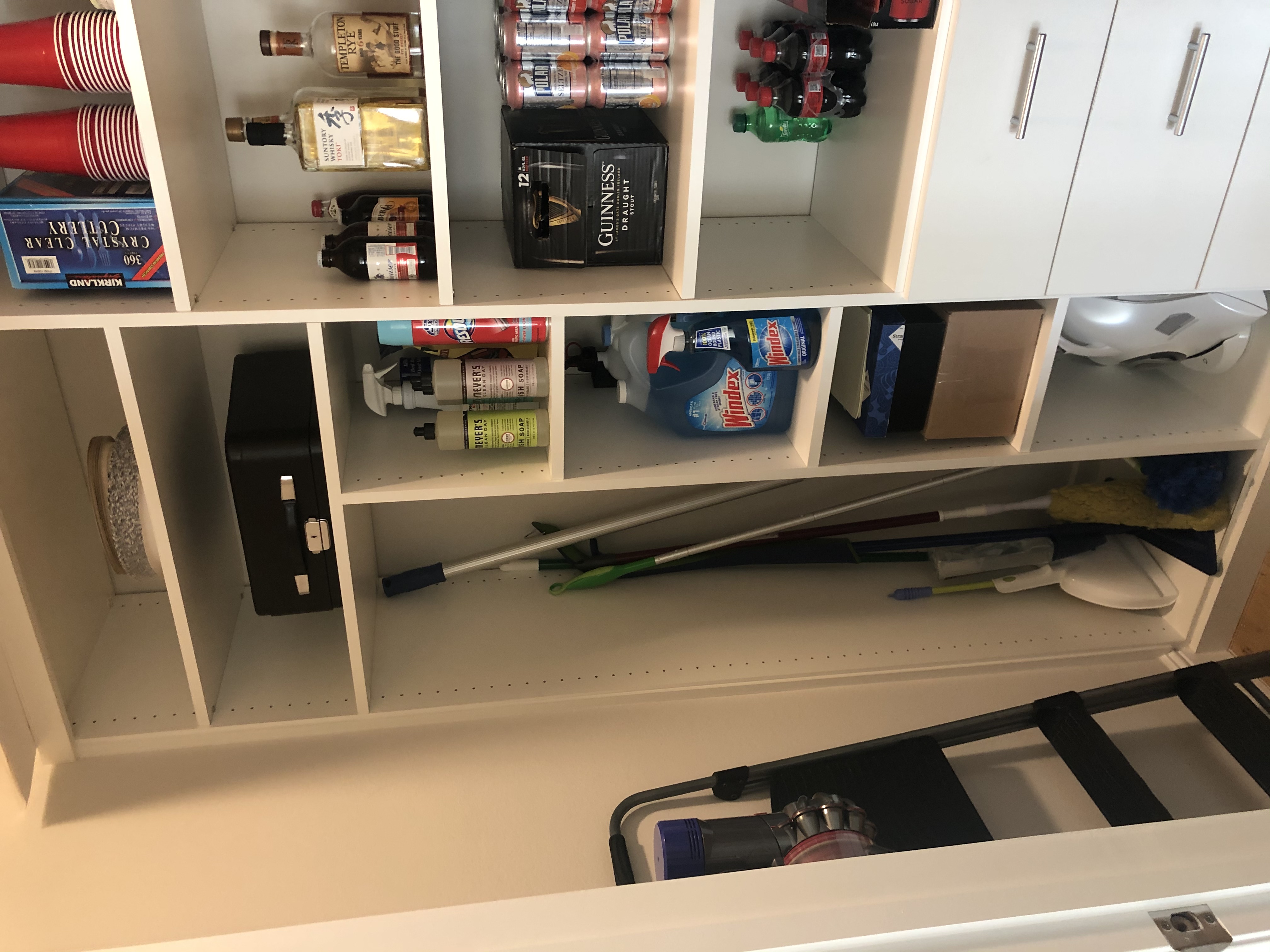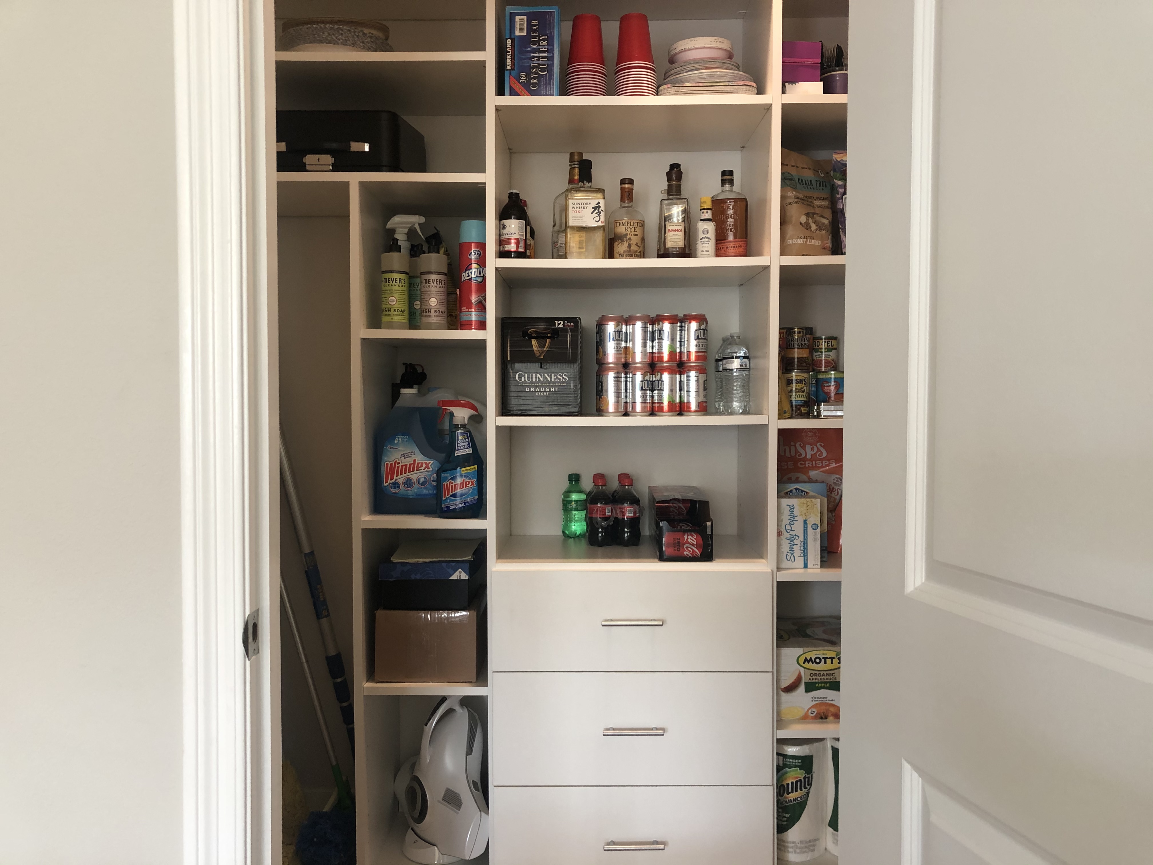 All of our pantry storage systems are hand-crafted and custom-built specifically for your space based on the design we create with you. Our pantry storage and custom organization solutions are built to order in our shop and made by professional carpenters and expert cabinetmakers to fit the unique contours of your space. Closet Solutions guarantees our cabinets for as long as you own your home.