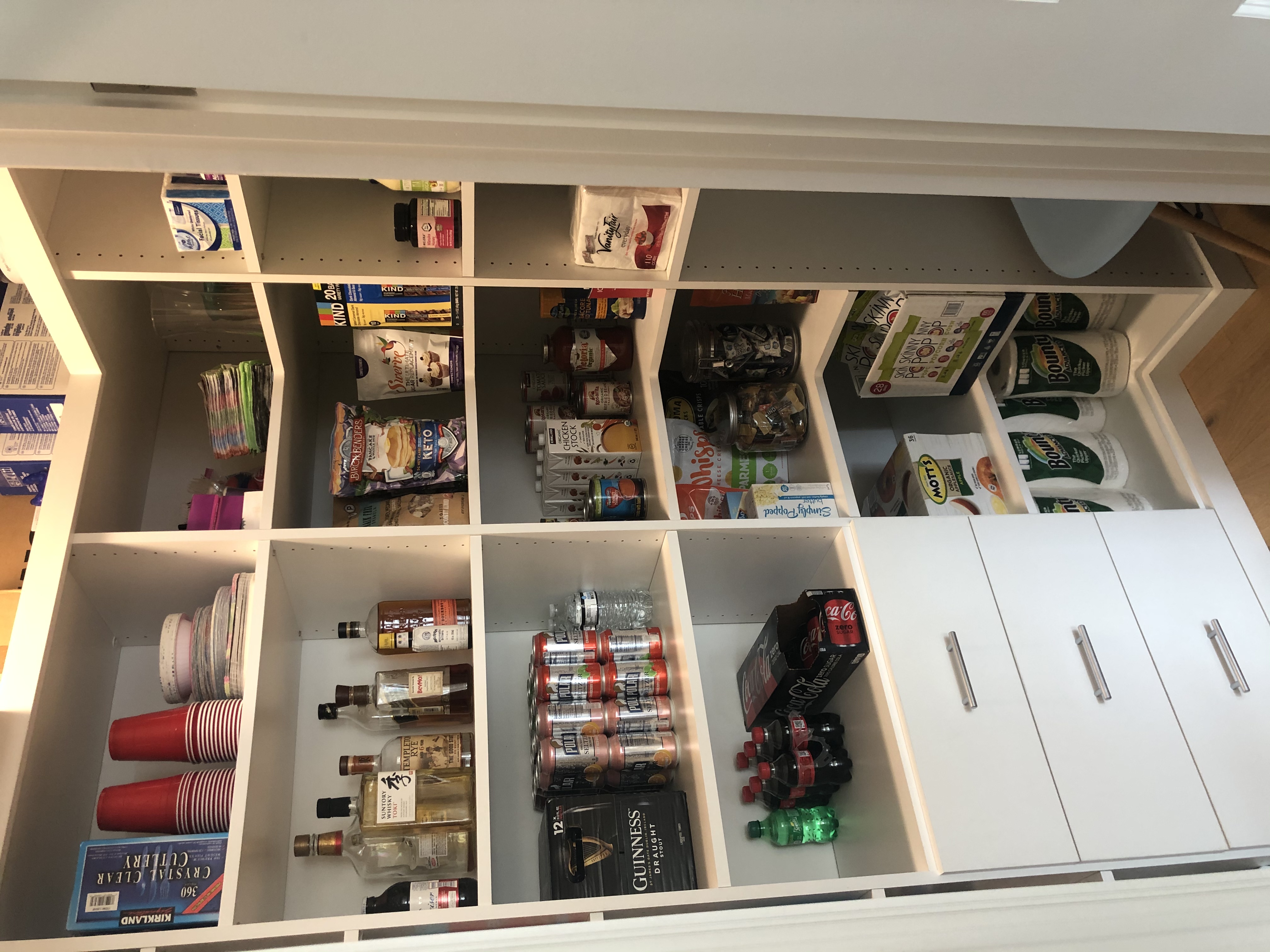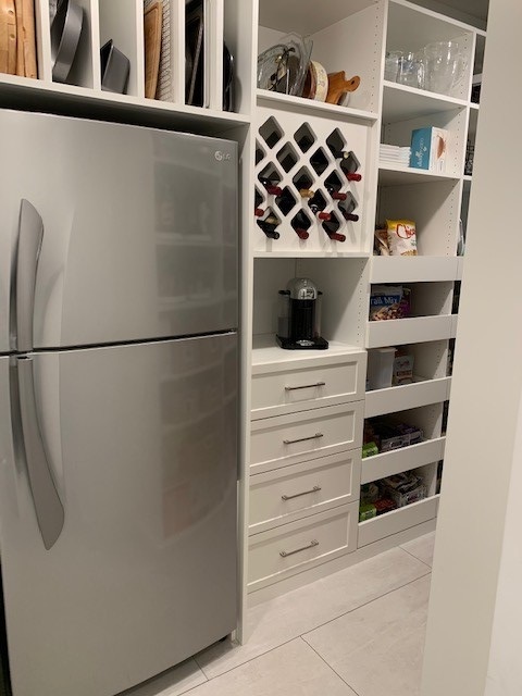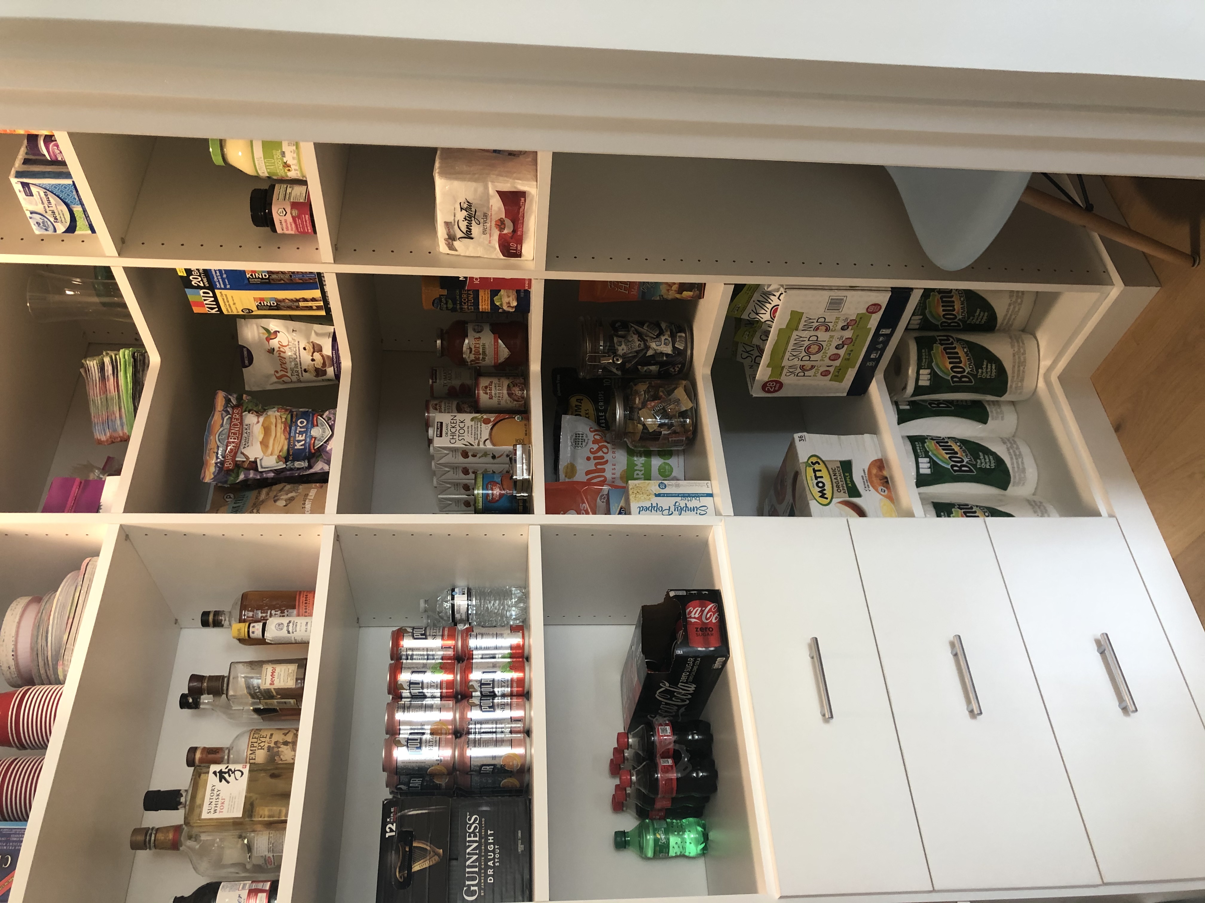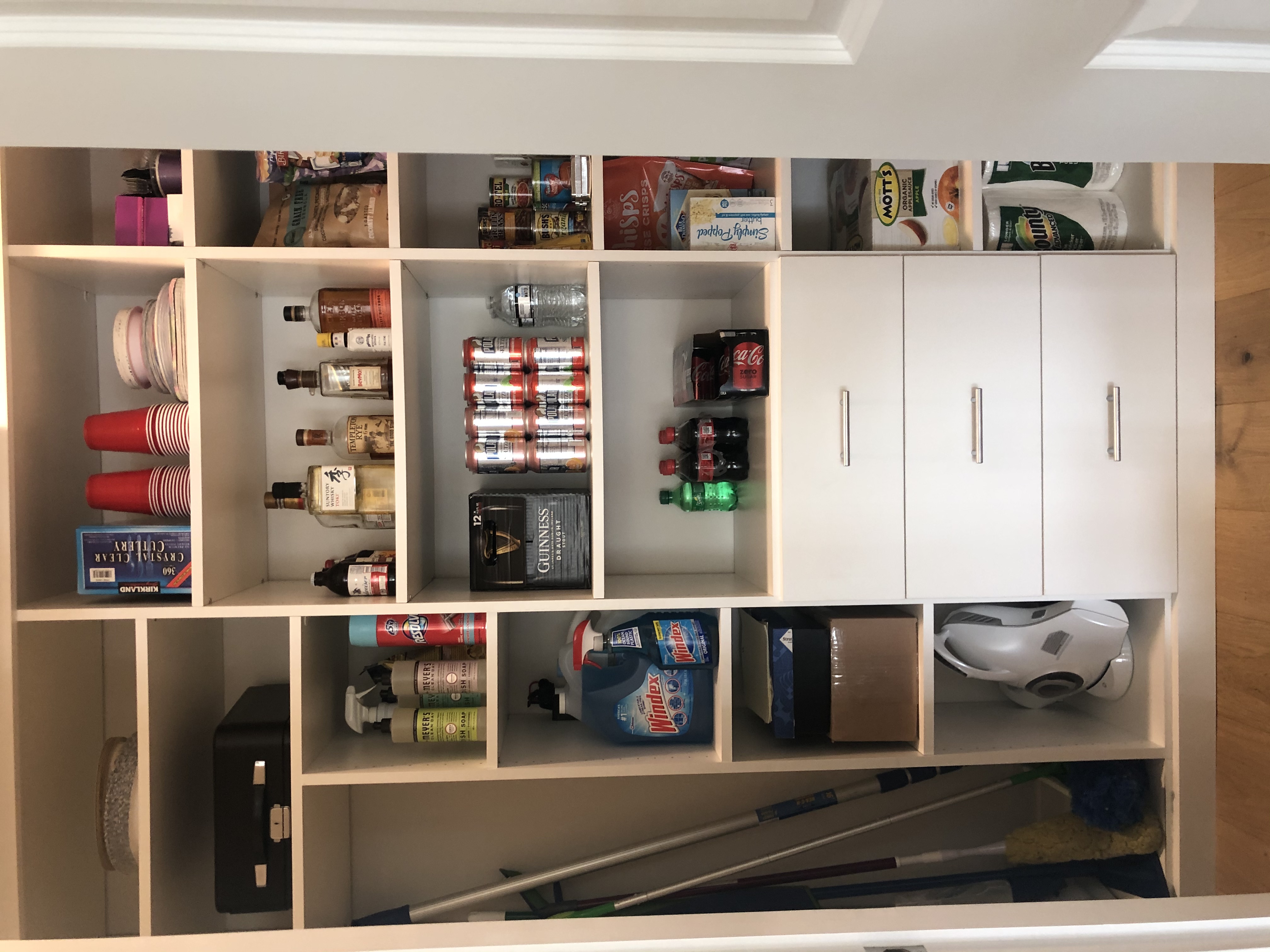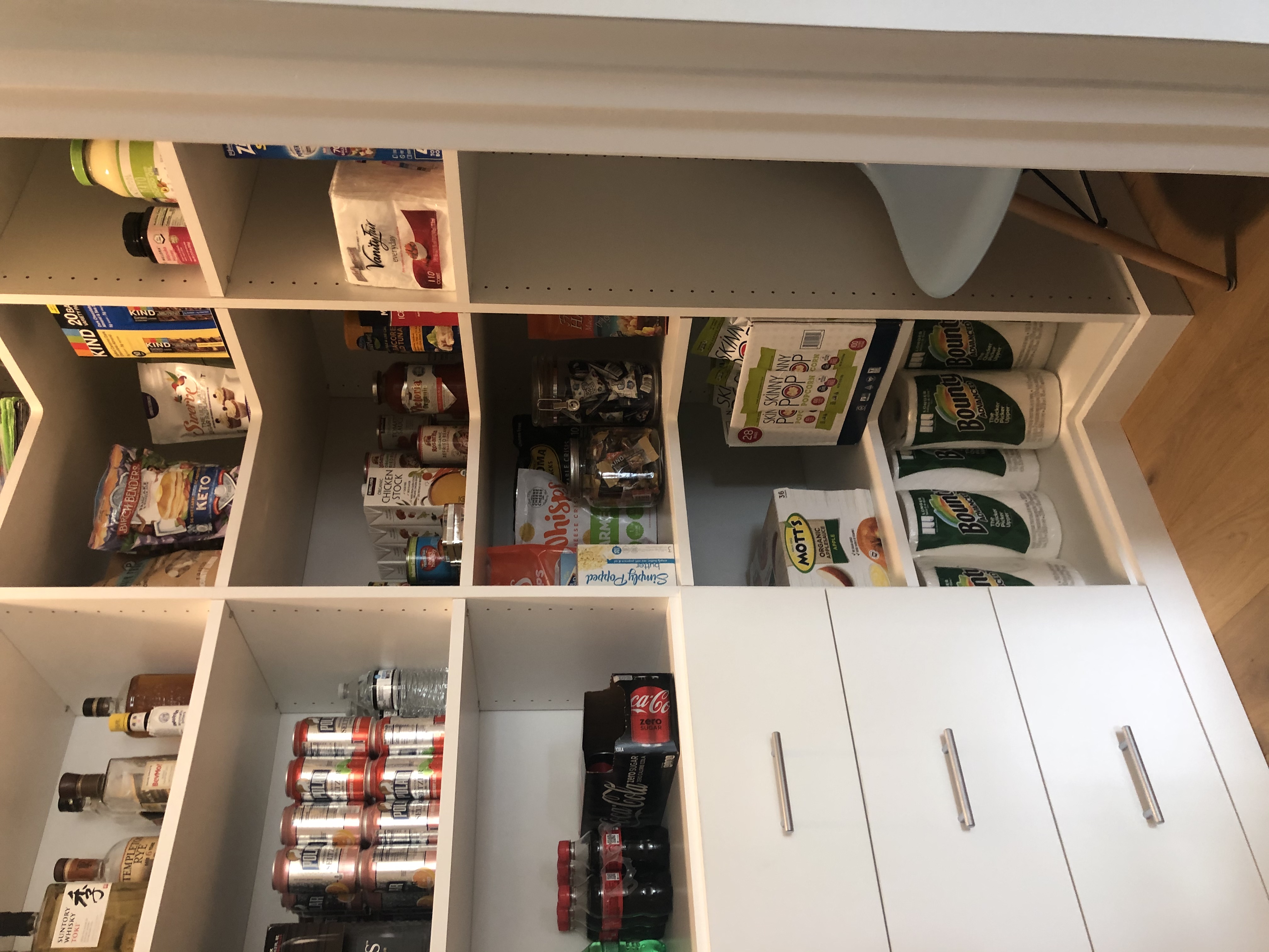 A custom designed pantry provides a highly functional and well-organized storage solution for easy accessibility to food frequently used kitchen items, keeping order in the kitchen to make cooking, meal prep and entertaining a breeze.